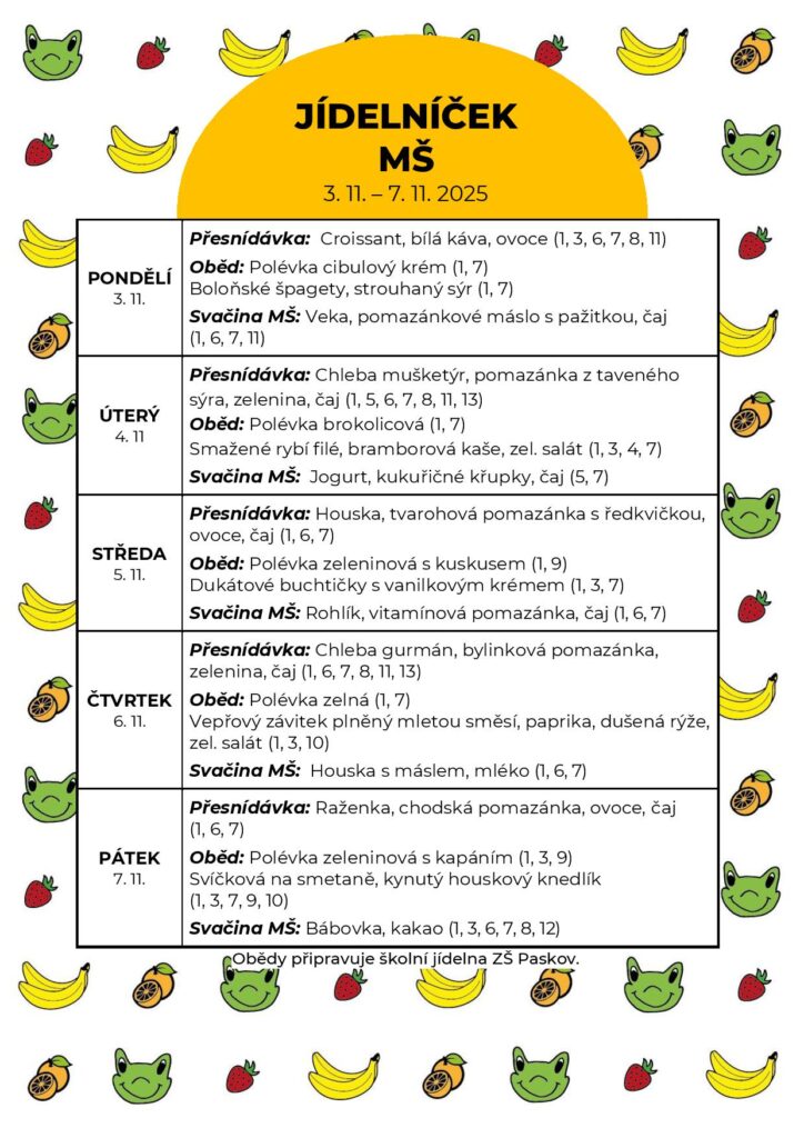- Pokud v případě náhlého onemocnění nestihnete odhlásit dítě do 7.30 h, je možno pouze první den nemoci odebrat stravu do jídlonosiče, a to od 11.30 h do 11.45 h.