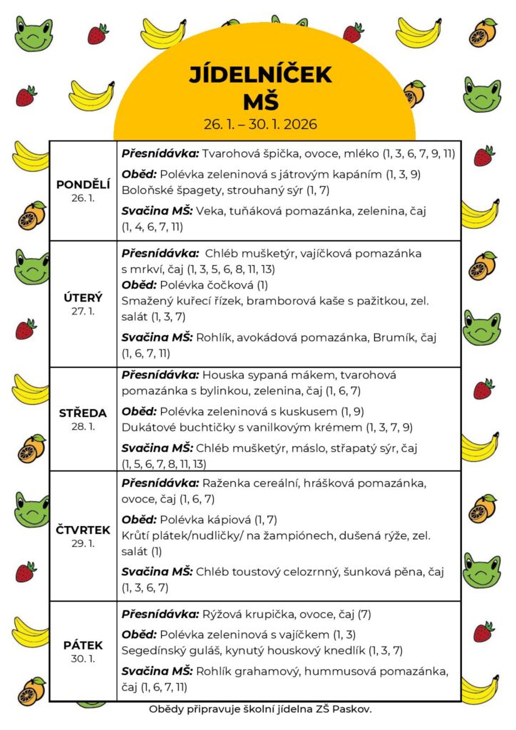Stravné za oběd může být změněno dle aktuální finanční kalkulace i během školního roku na základě rozhodnutí a pokynů vedoucí ŠJ ZŠ Paskov.
